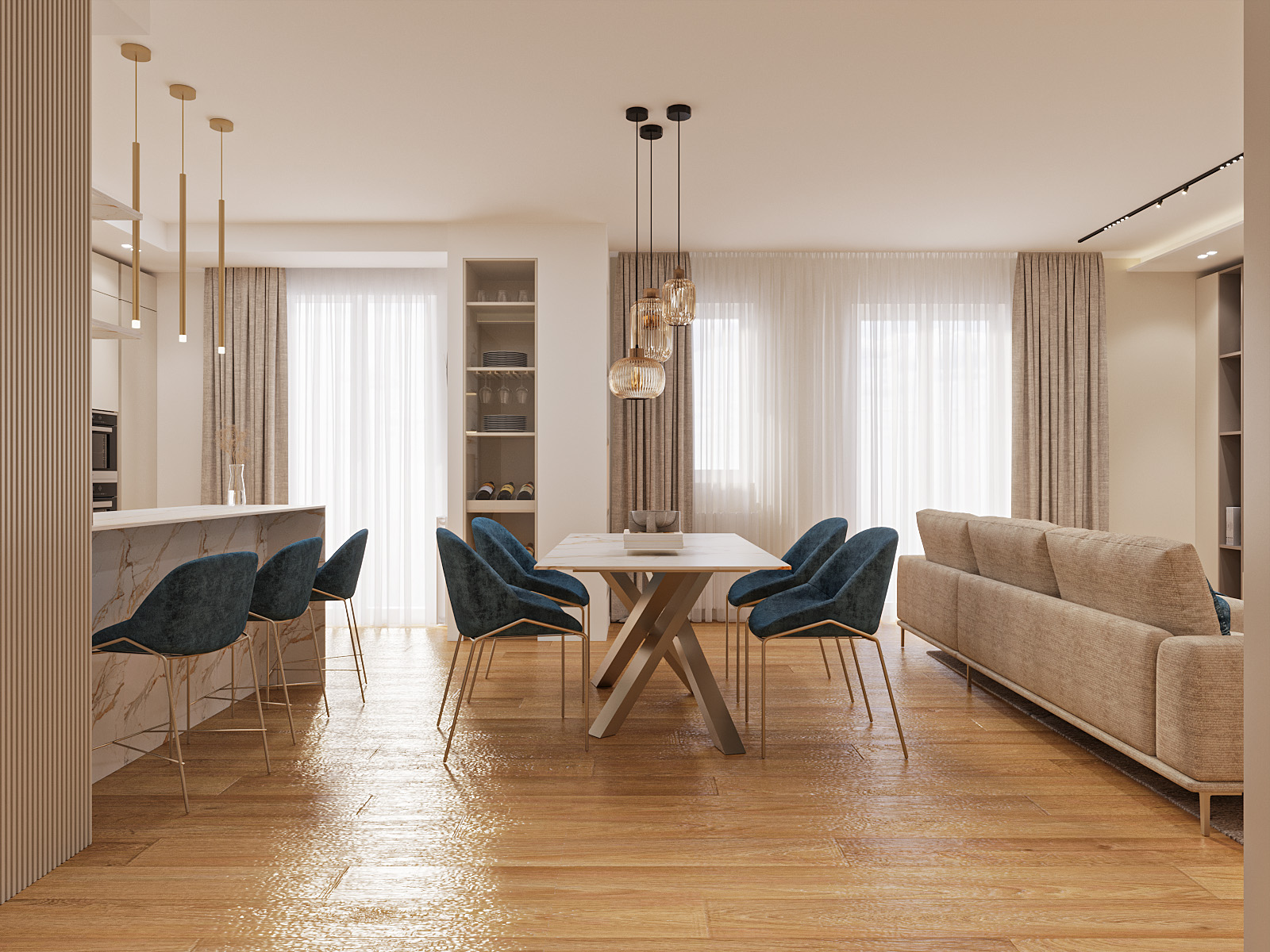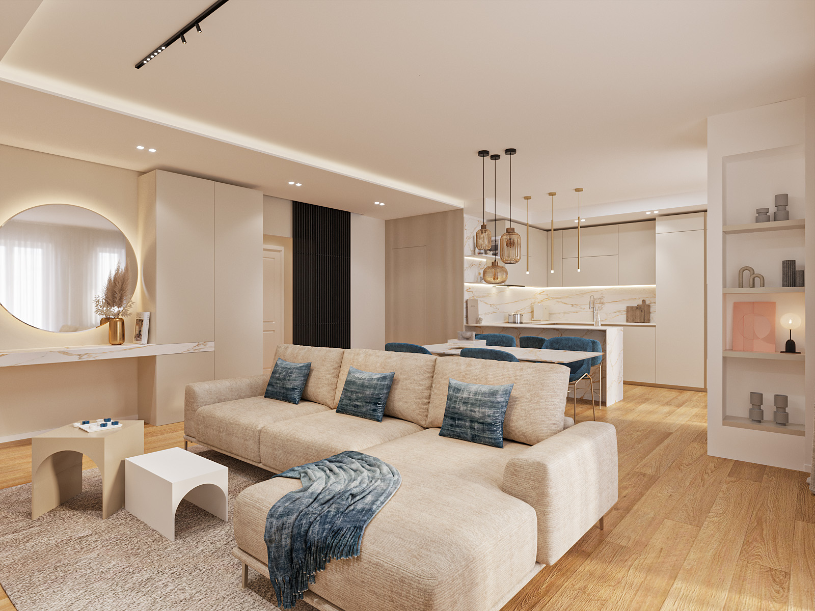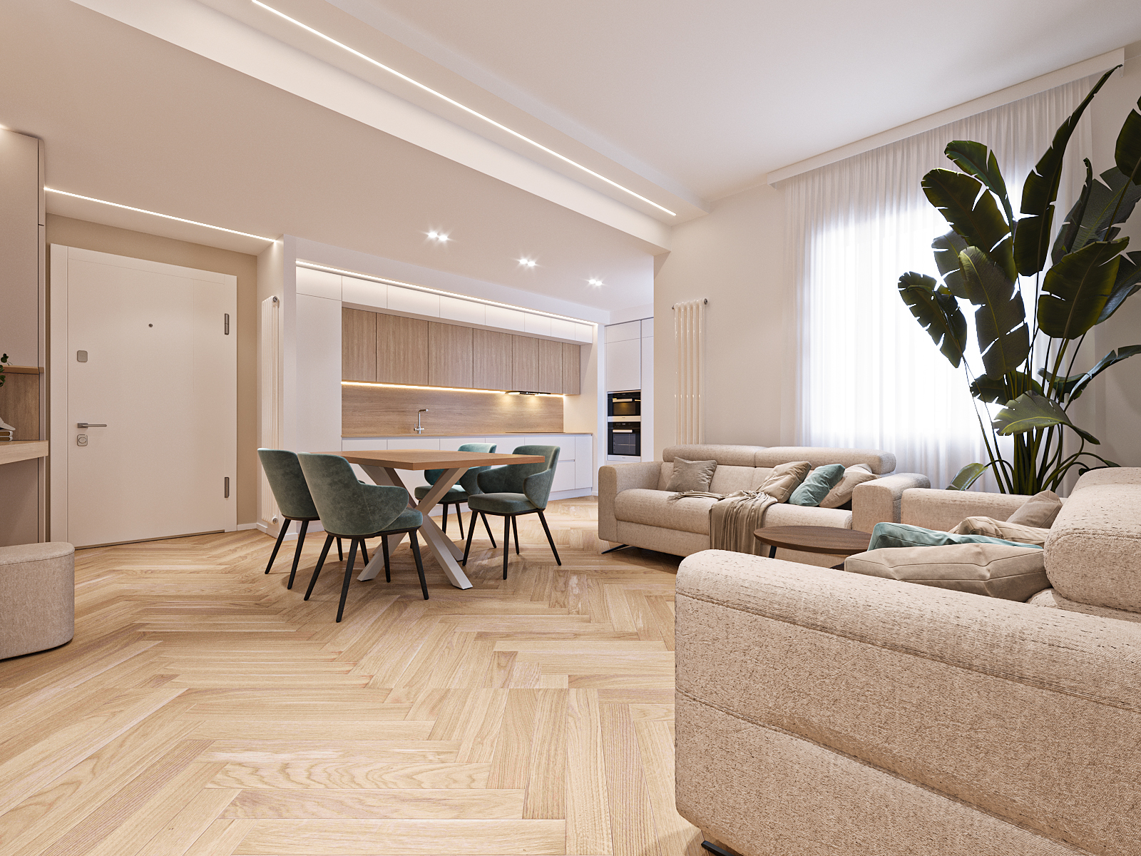 PROGETTAZIONE OPEN SPACE Abbattere le barriere fisiche per accorciare le distanze. In perfetto stile contemporaneo, un open space è la soluzione di tendenza per fondere gli ambienti più importanti della casa: cucina e soggiorno.